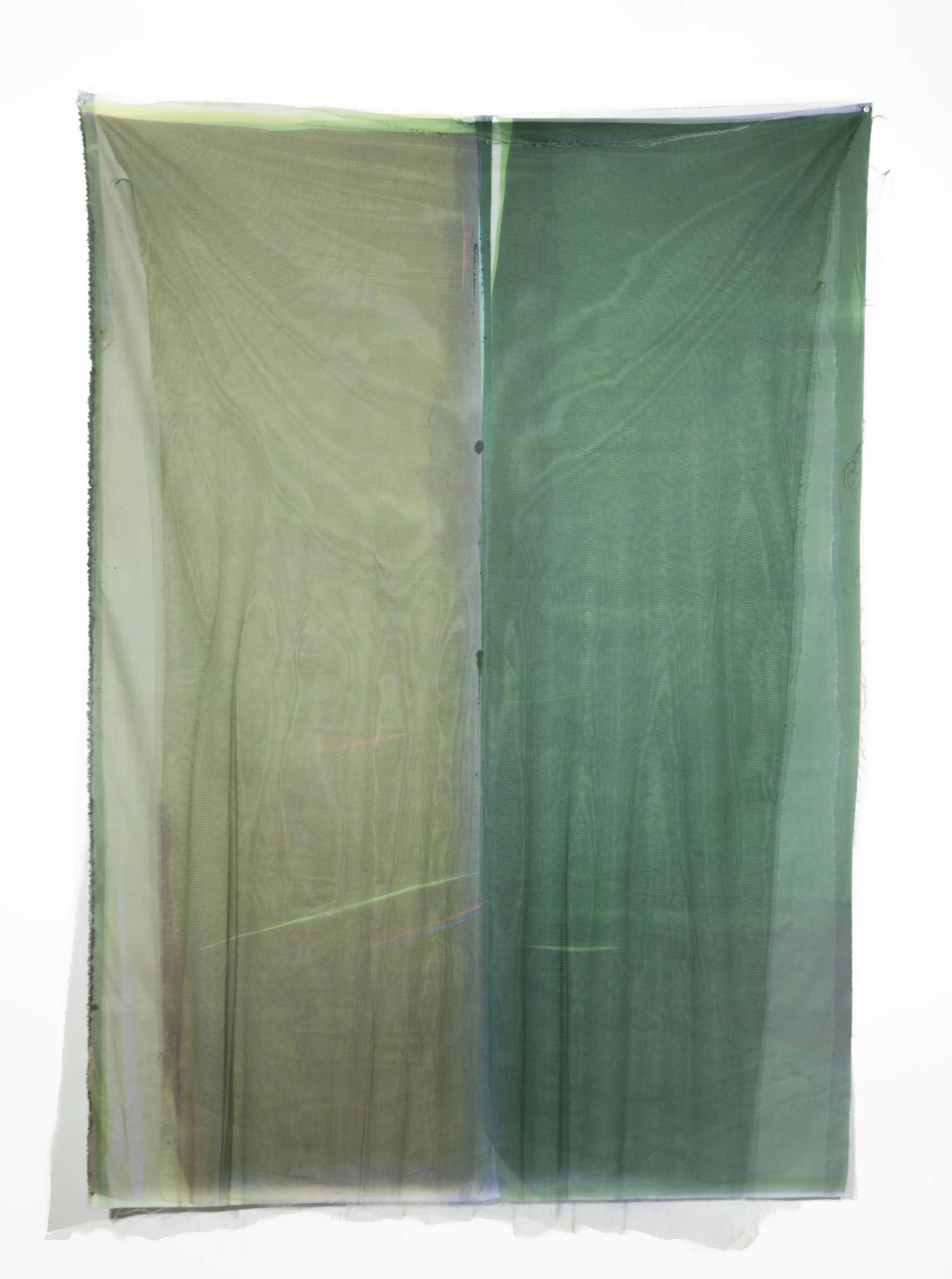 48 x 60 inches. Pigment print on Mesh and Cotton Fabric.